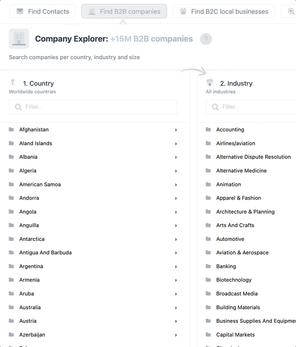 - Generate B2B and B2C lists in one click