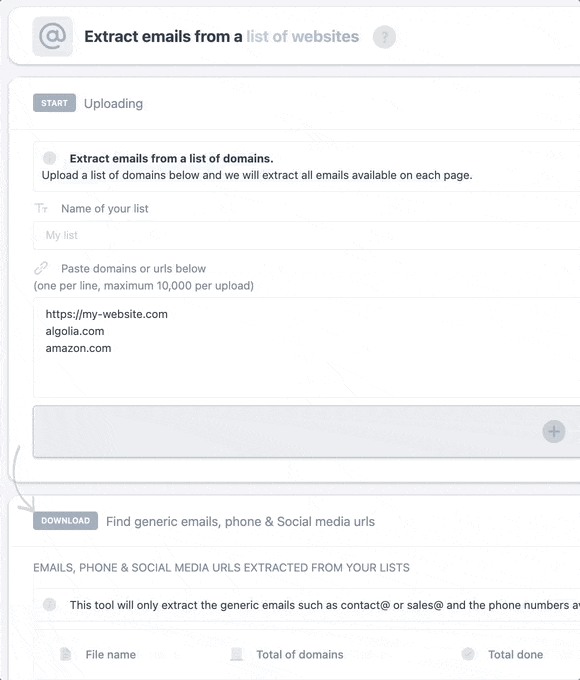 Grab emails, phones & socials in one click.- Upload a list of websites to extract emails