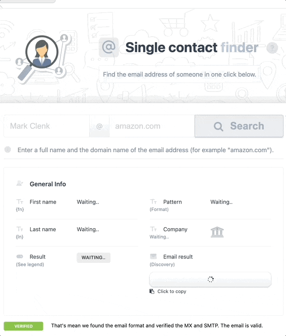 Find emails from first name, last name and company name